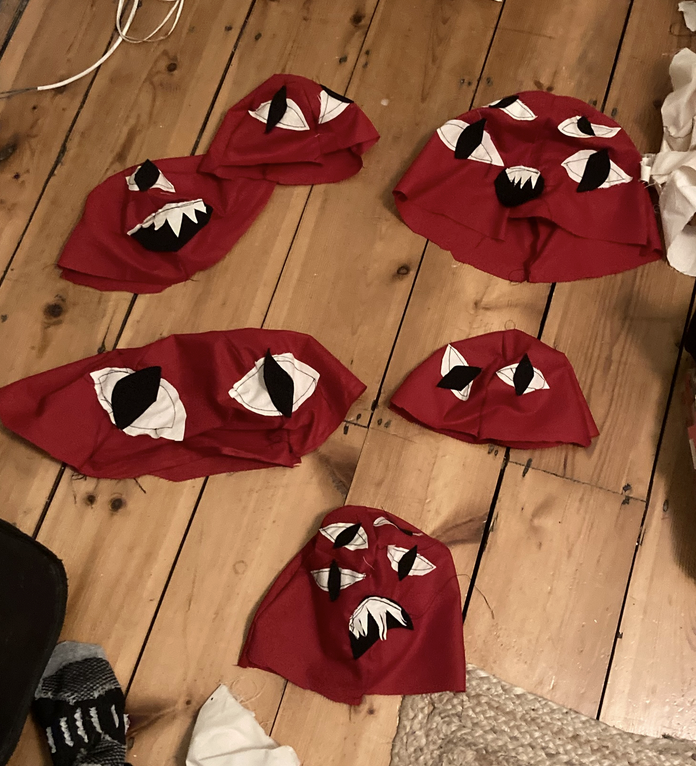 This one was a really interesting process, and one of my more successful sculptural costumes. If I were to do this again I’d choose a different order for sewing – integrating the smaller heads onto the main head before sewing the larger head would have saved me a lot of time and hassle. The placement of the mouth was funny and made the costume almost entirely unwearable, though it did fit my (much smaller) friend cesca quite well.