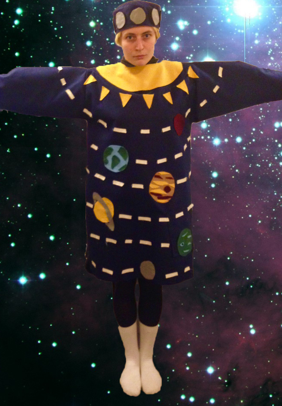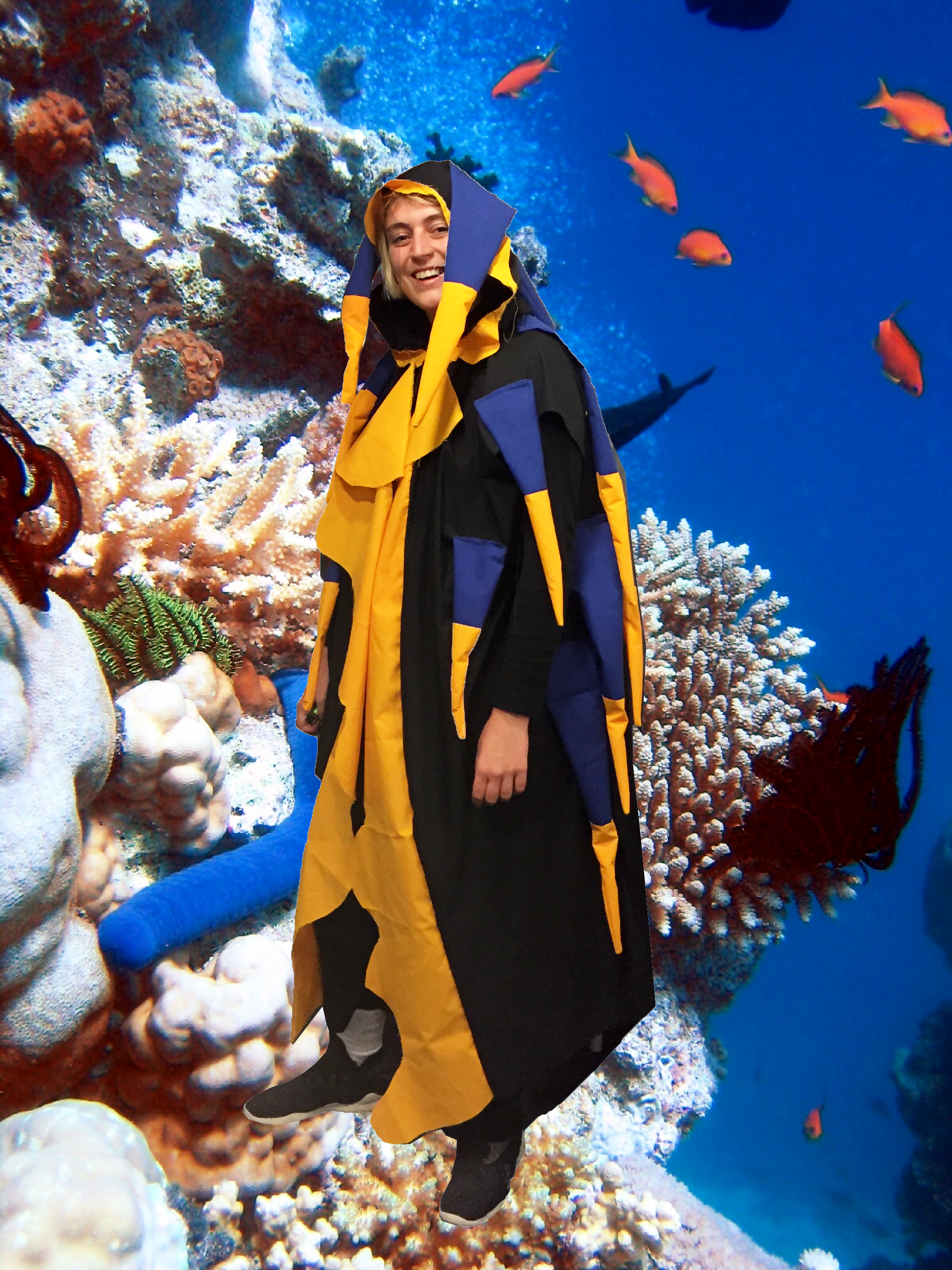 This costume was heavily inspired by Sandra Leonard’s soft sculpture costumes for children. It was made quite quickly, and without stuffing for the spines!