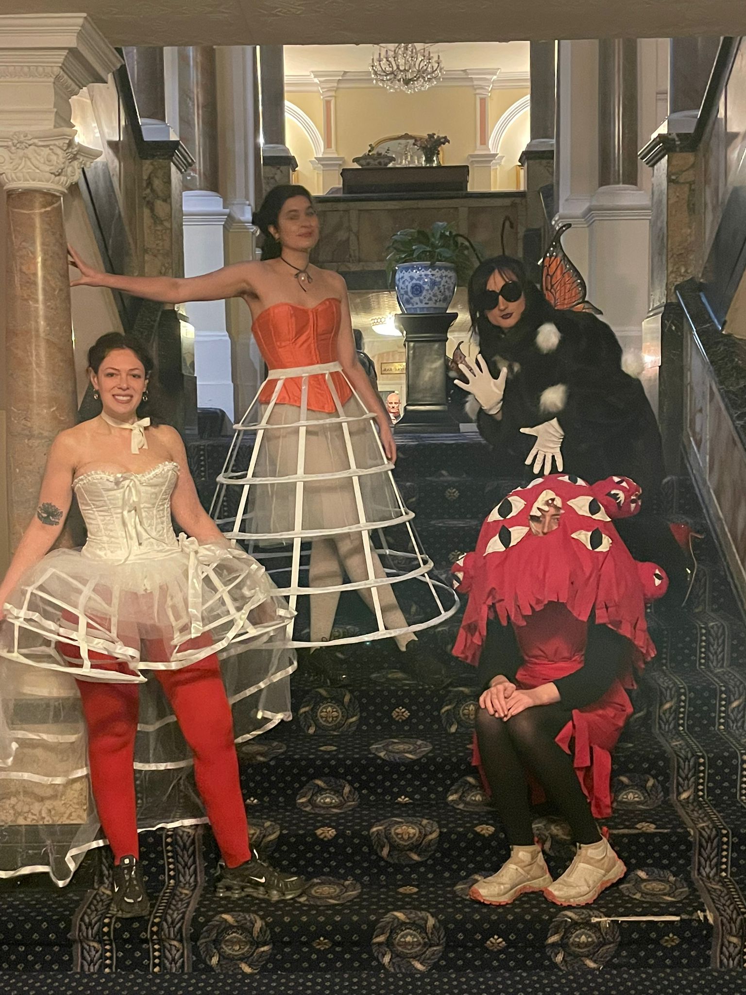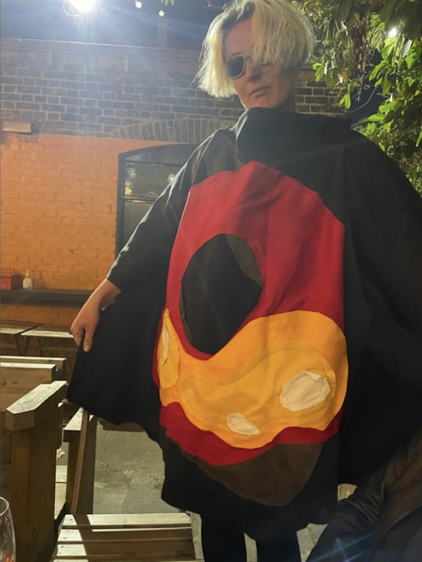We ran out of felt for the hands and couldn’t cover the whole coat. This was an extremely labour intensive idea, but george’s makeup really brought it together. The plastic hands on our shoulders had zero structural integrity and fell off almost immediately.
