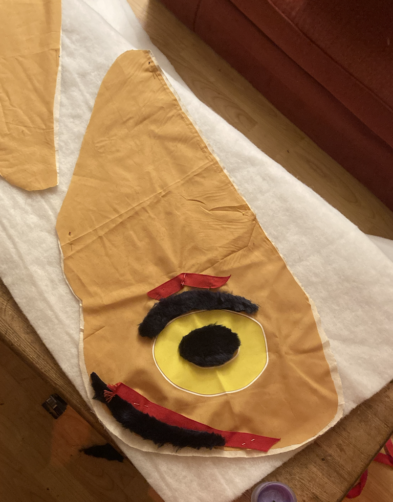 This was surprisingly easy and effective – light netting sewn in an a-line with felt layered on top. I feel like making multi layered clothing with sheer elements is a really nice way to structure a costume.